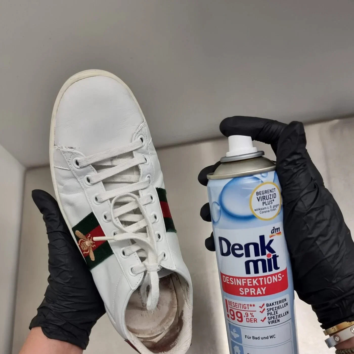 Hygiene ist wichtig. Deshalb werden deine Sneaker zum Schluss gut desinfiziert. Und schon kannst du damit wieder um die Häuser ziehen.